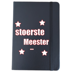 Notitieboek A5, met harde kaft, bedrukt met de leukste/coolste/liefste juf/meester (naam).