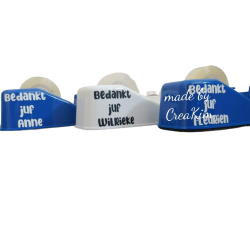 Plakbandhouder, zijkant word bedrukt met de leukste/coolste/liefste meester/juf (naam).