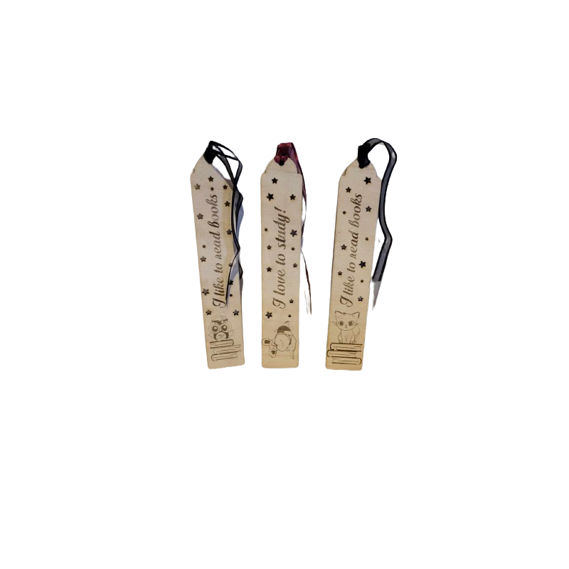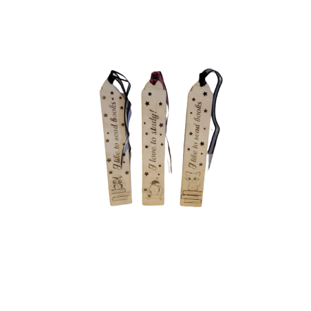 Leuke boekenlegger van hout, met feestelijke gravering.