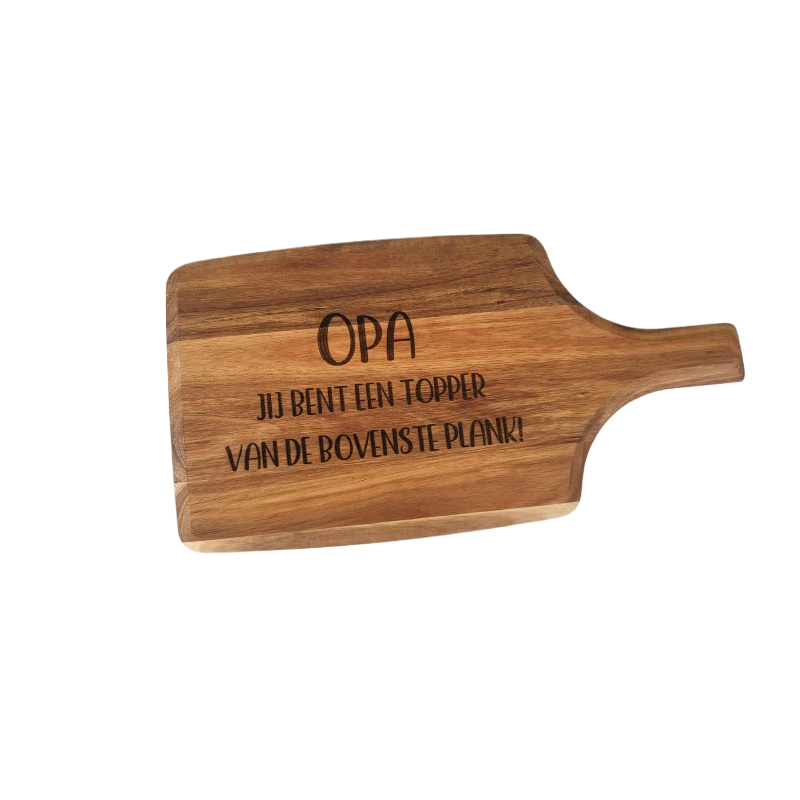 Borrelplank met tekst; Opa jij bent een topper van de bovenste plank!
