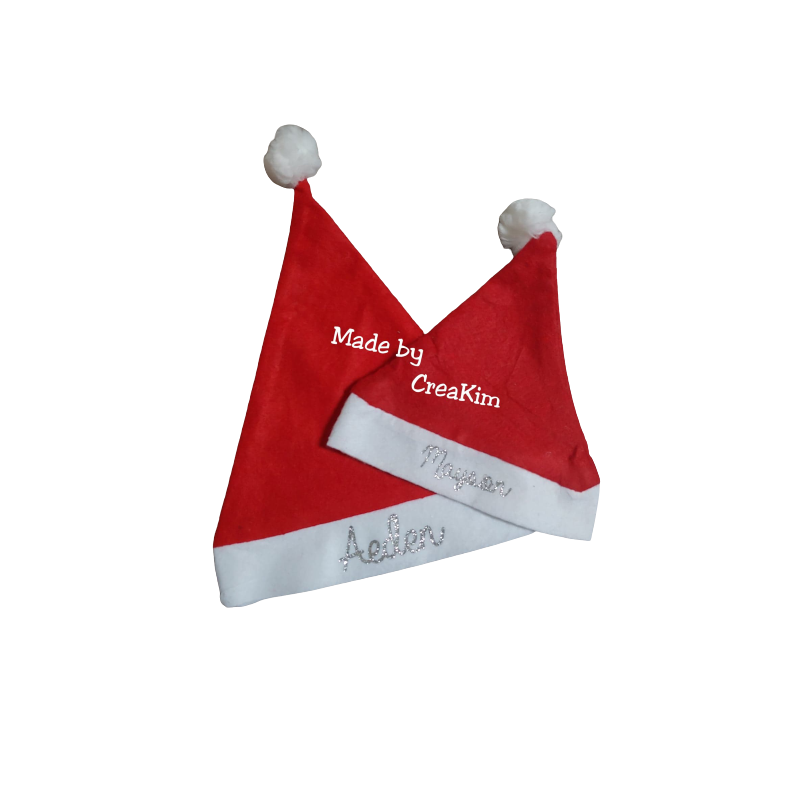 Kerstmuts voor kinderen, bedrukt met naam.